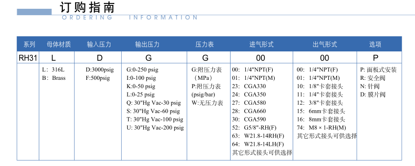 P31不銹鋼雙極減壓閥,雙級式膜片減壓結構,輸出壓力穩定,適用于高純氣體、標準氣體、腐蝕性氣體等。