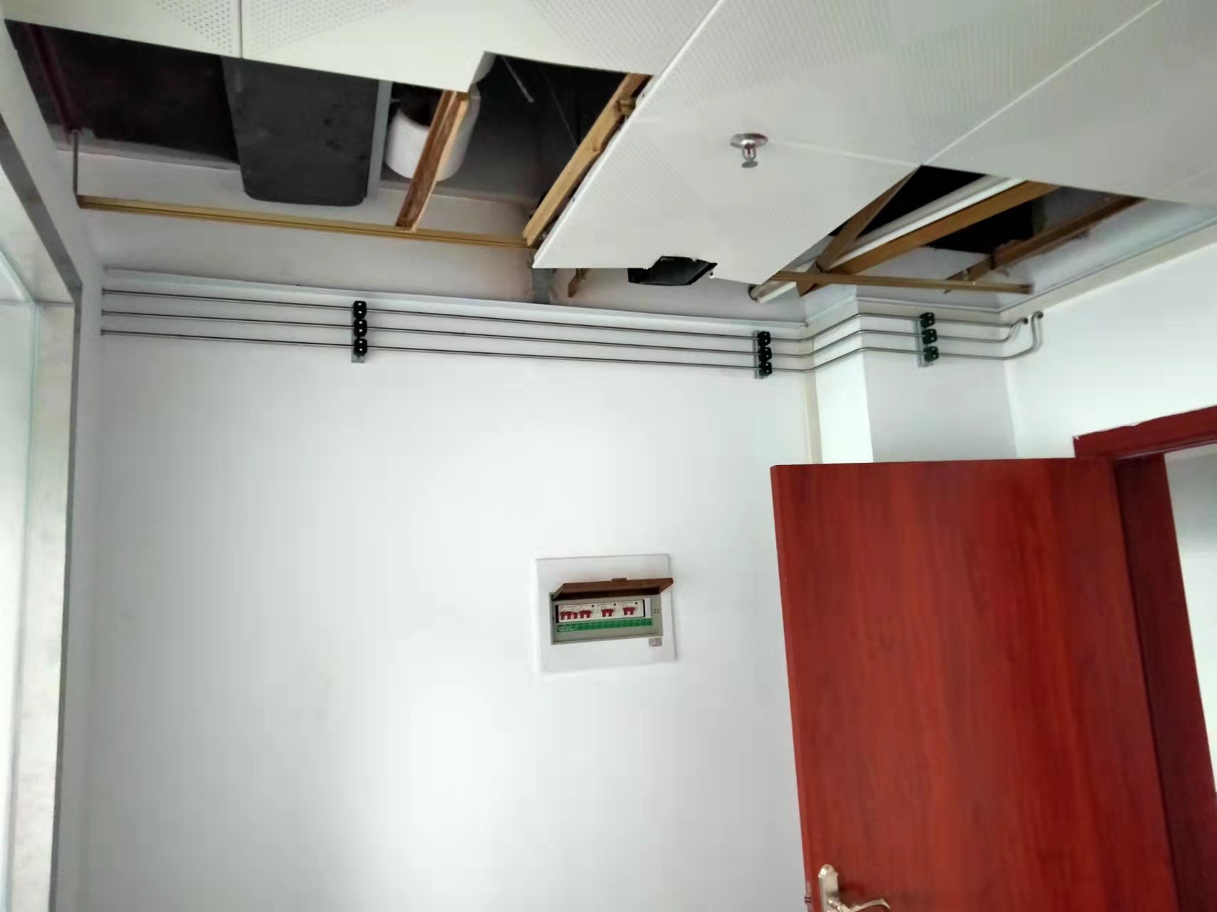4、在管道的行進(jìn)路線中,每隔1米應(yīng)設(shè)置一組管夾,如遇特殊建筑物結(jié)構(gòu),應(yīng)酌情考慮
